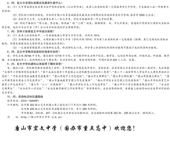 唐山市宏文中学2022年中考招生问答: