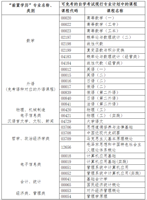 3.表格中“可免考的自学考试现行专业计划中的课程”如有新调整或变化时,按最新的专业计划执行。
