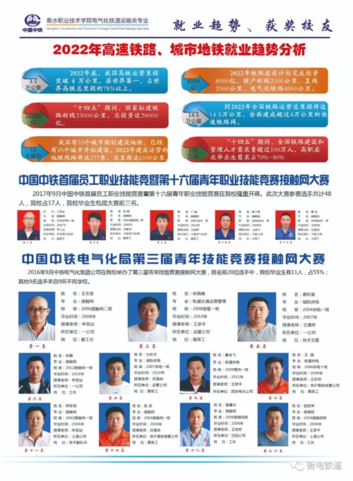 1、 中铁直属:衡水职业技术学院电气化铁道运输类专业是与中国中铁总公司深入校企合作,产教融合,以培养高技能电气化铁路及轨道交通人才为主的公办职业院校。办学综合能力强,信誉可靠,认可度高。