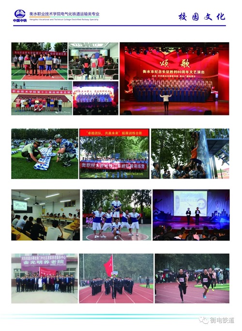 衡水职业技术学院电气化铁道运输类专业是学院与中国中铁深入校企合作、产教融合共建特色专业,打造铁路和轨道交通行业“文化素质+职业技能”的新型大学生人才培养模式,是全国铁路企业举办的电气化铁道运输类专业的国家级重点职业院校,是国家电气化铁道运输类和地铁行业后备力量的主要来源,是中国电气化铁道运输类高技能人才培养基地。学院下设"铁道供电技术”、“铁道信号自动控制"、城市轨道交通运营管理"、“铁道机车运用与维护”专业,具备了全日制大专学生的培养资格,打造铁路及轨道交通行业"文化素质+职业技能"的新型大学生人才培养模式,突出   "应用"  与  "技能"两个特点,在提高大学生文化素质的基础上,运用学校雄厚师资和全真铁路"四电"及运输专业综合实训基地开展“真刀真枪"的实训课程.使培养出来的大学生不是只懂理论知识的花瓶,而是成为I正掌握实际操作技能的优秀者。